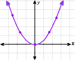 Por otro lado, cuando la gráfica es una parábola, las relaciones cuadráticas. Es decir, es una relación como y=3x2+5x-8, y=3x2+5x, y=3x2-8, y=3x2, etc. Donde la “x” aparece elevada al cuadrado donde aparece además algunos términos de grado uno y otros de grado cero